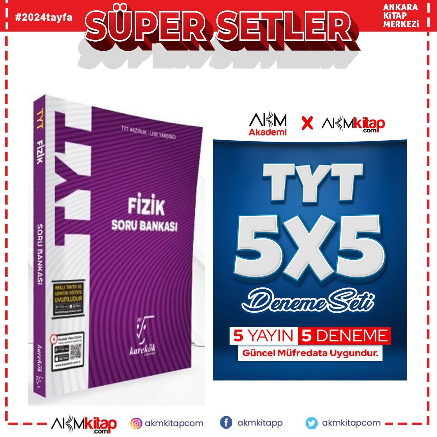 Karekök TYT Fizik Soru Bankası ve AKM Kitap 5 li Deneme Seti 2 Kitap