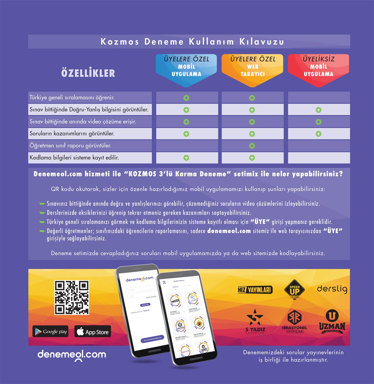 Denemeol.com hizmeti ile "KOZMOS 3'lü Karma Deneme " setimizde neler yapabilirsiniz ?