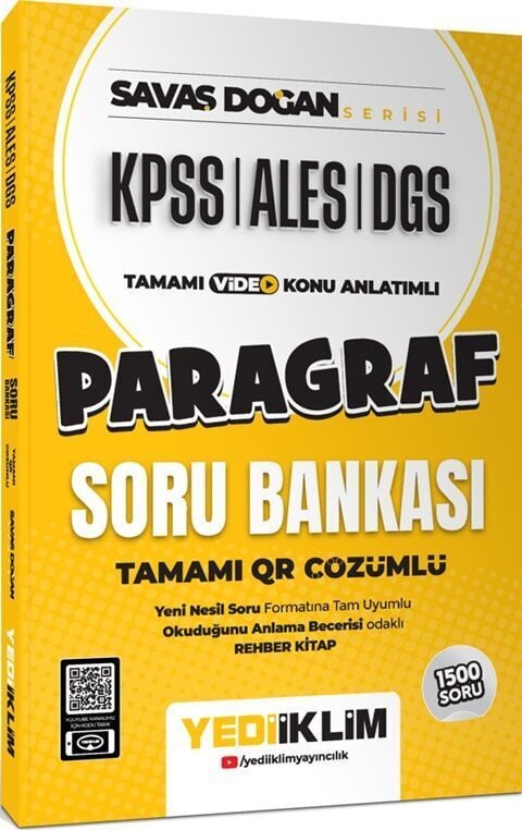 KPSS ALES DGS Savaş Doğan Serisi Paragraf Tamamı Video Konu Anlatımlı ve Tamamı QR Çözümlü Soru Bankası Yediiklim Yayınları