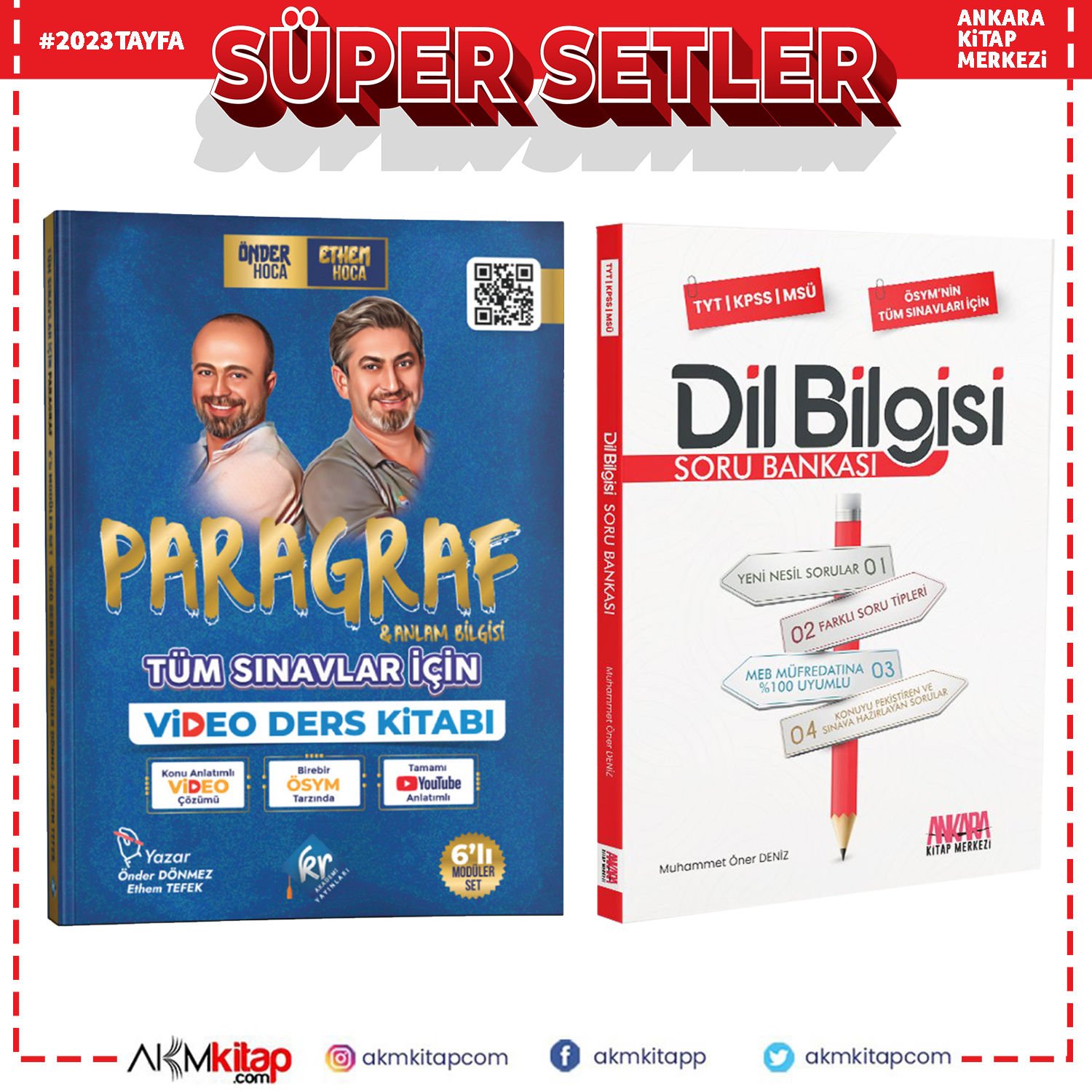 Kr Akademi Önder Hoca ve Ethem Hoca Paragraf ile Anlam Bilgisi ve AKM Dil Bilgisi Soru Bankası Seti 2 Kitap