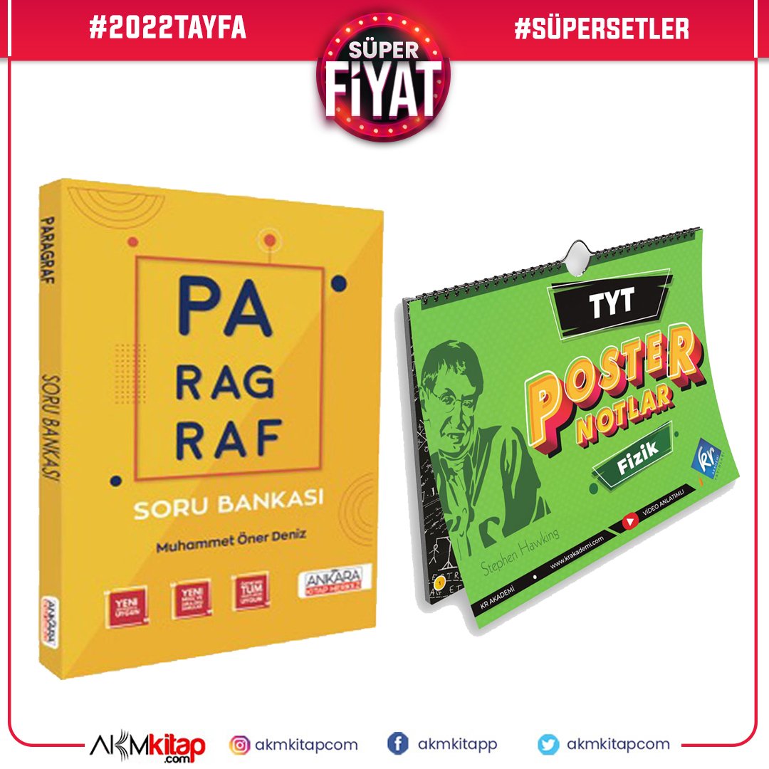 Kr Akademi TYT Fizik Posteri ve AKM Paragraf Soru Bankası Seti 2 Kitap