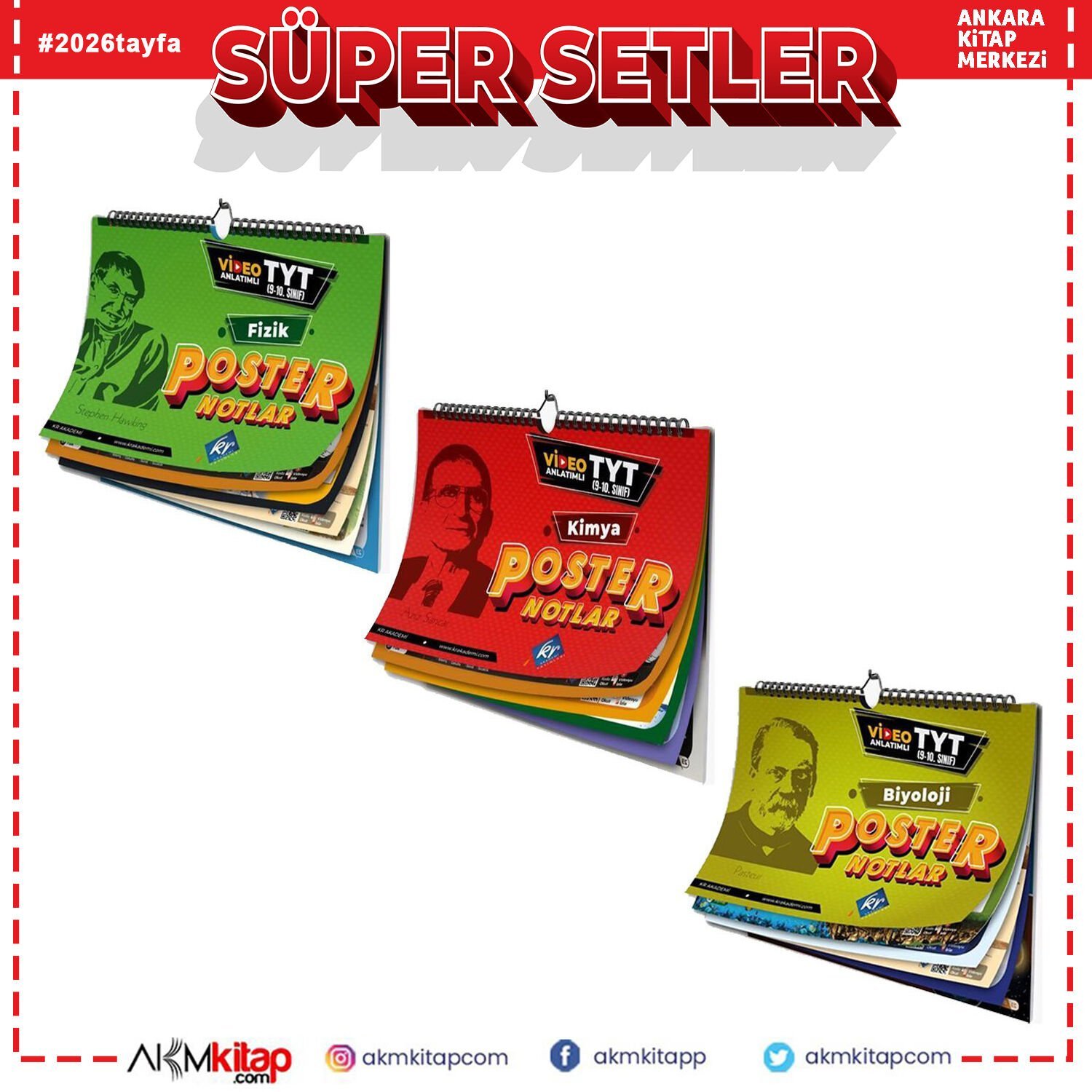 KR Akademi TYT Poster Seti Fizik Kimya Biyoloji 3 Kitap