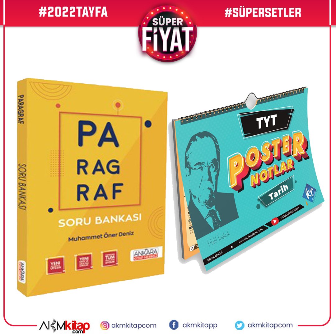 Kr Akademi TYT Tarih Poster ve AKM Paragraf Soru Bankası Seti 2 Kitap