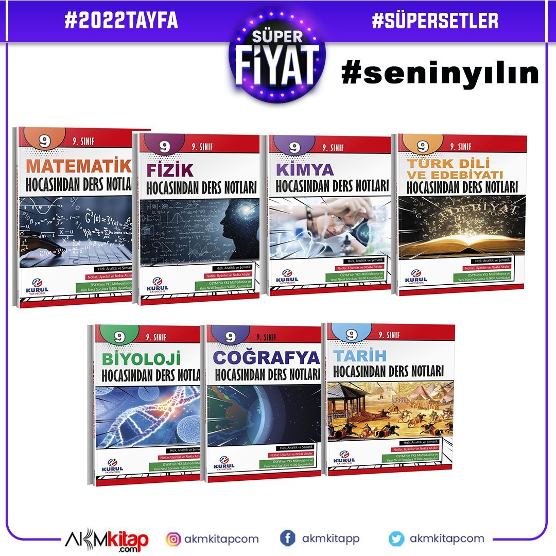 Kurul Yayıncılık 9.Sınıf Ders Notları Seti 7 Kitap Seti