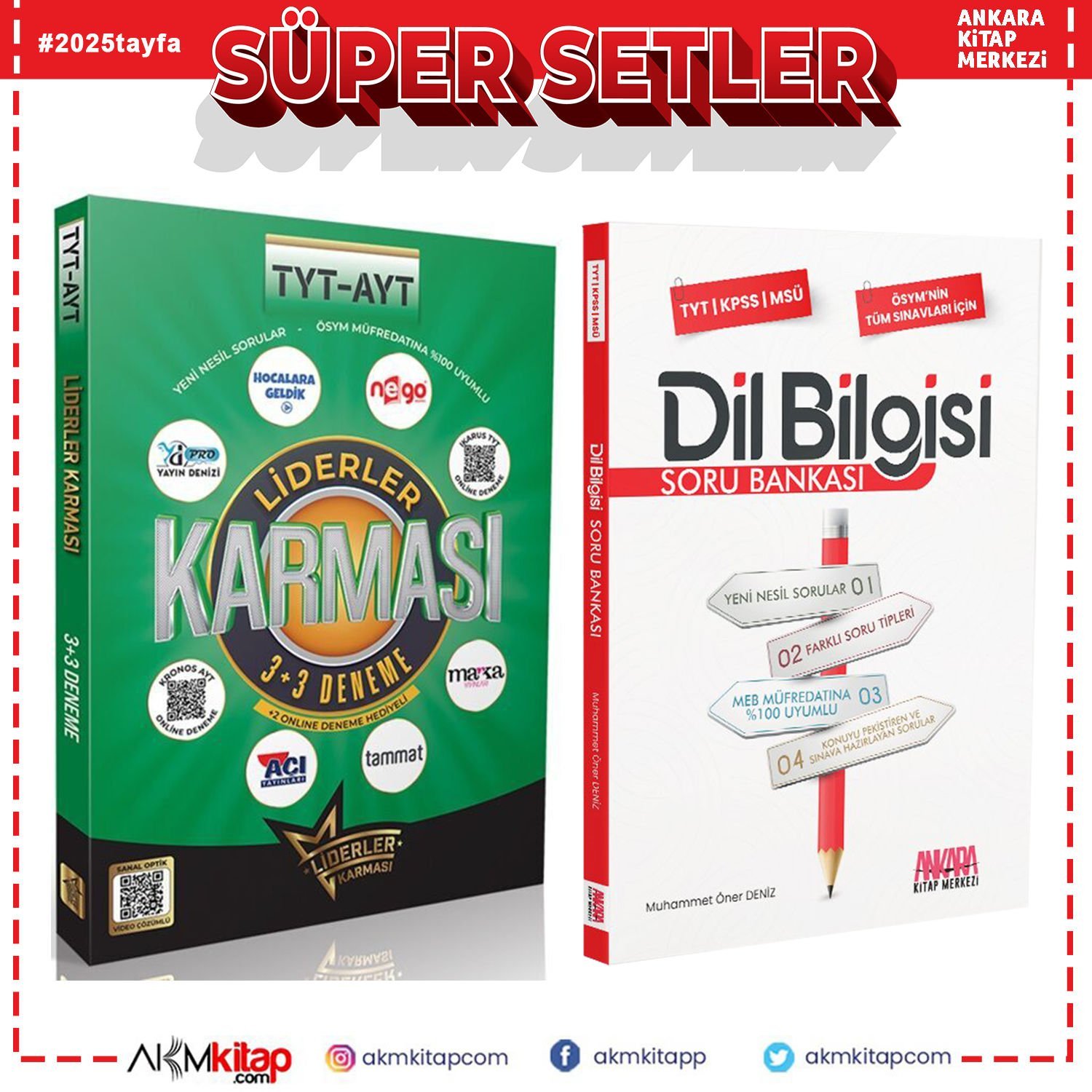 Liderler Karması TYT AYT 3+3 Deneme Seti ve AKM Dil Bilgisi Soru Bankası Seti 2 Kitap