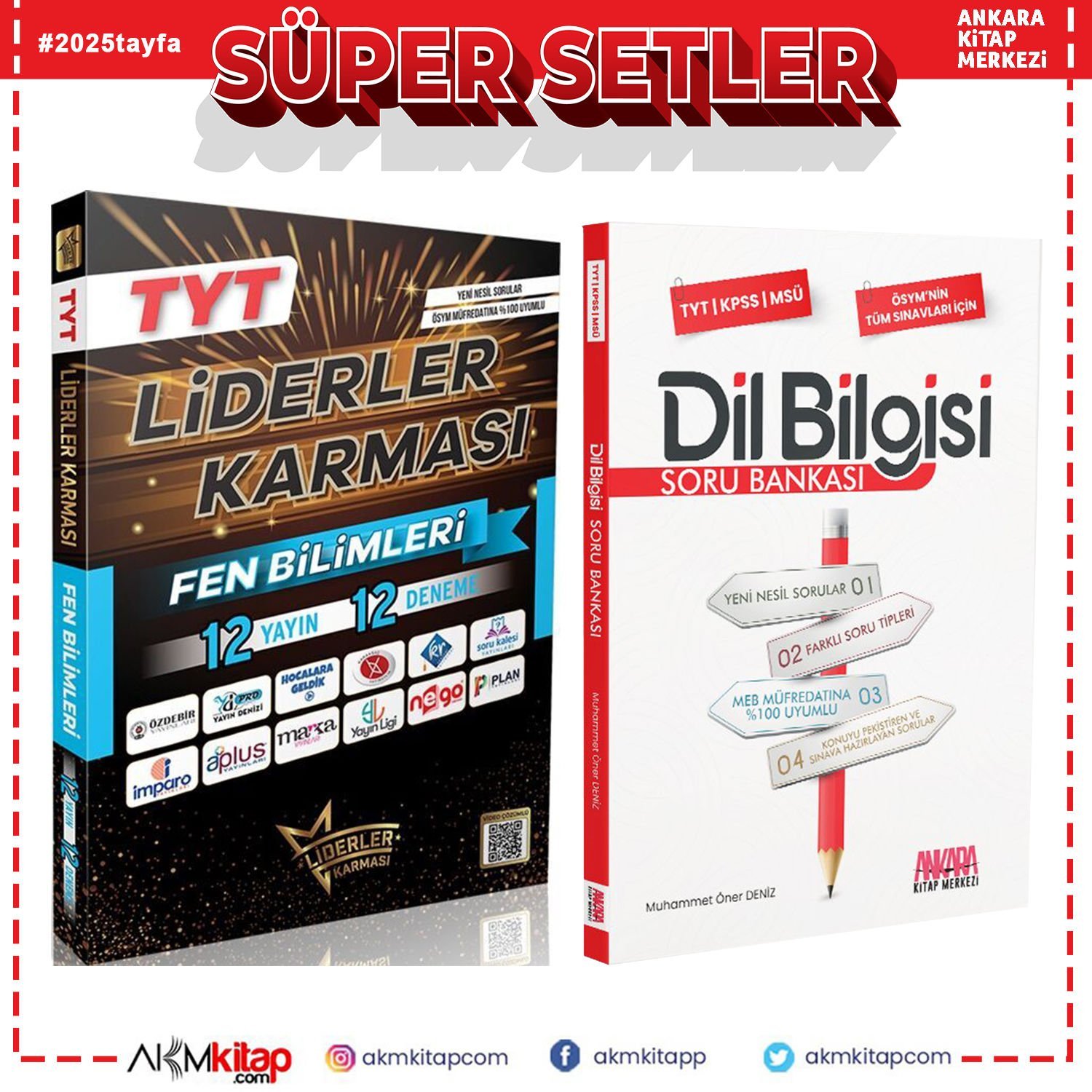 Liderler Karması TYT Fen Bilimleri 12 Yayın 12 Deneme ve AKM Dil Bilgisi Soru Bankası Seti 2 Kitap