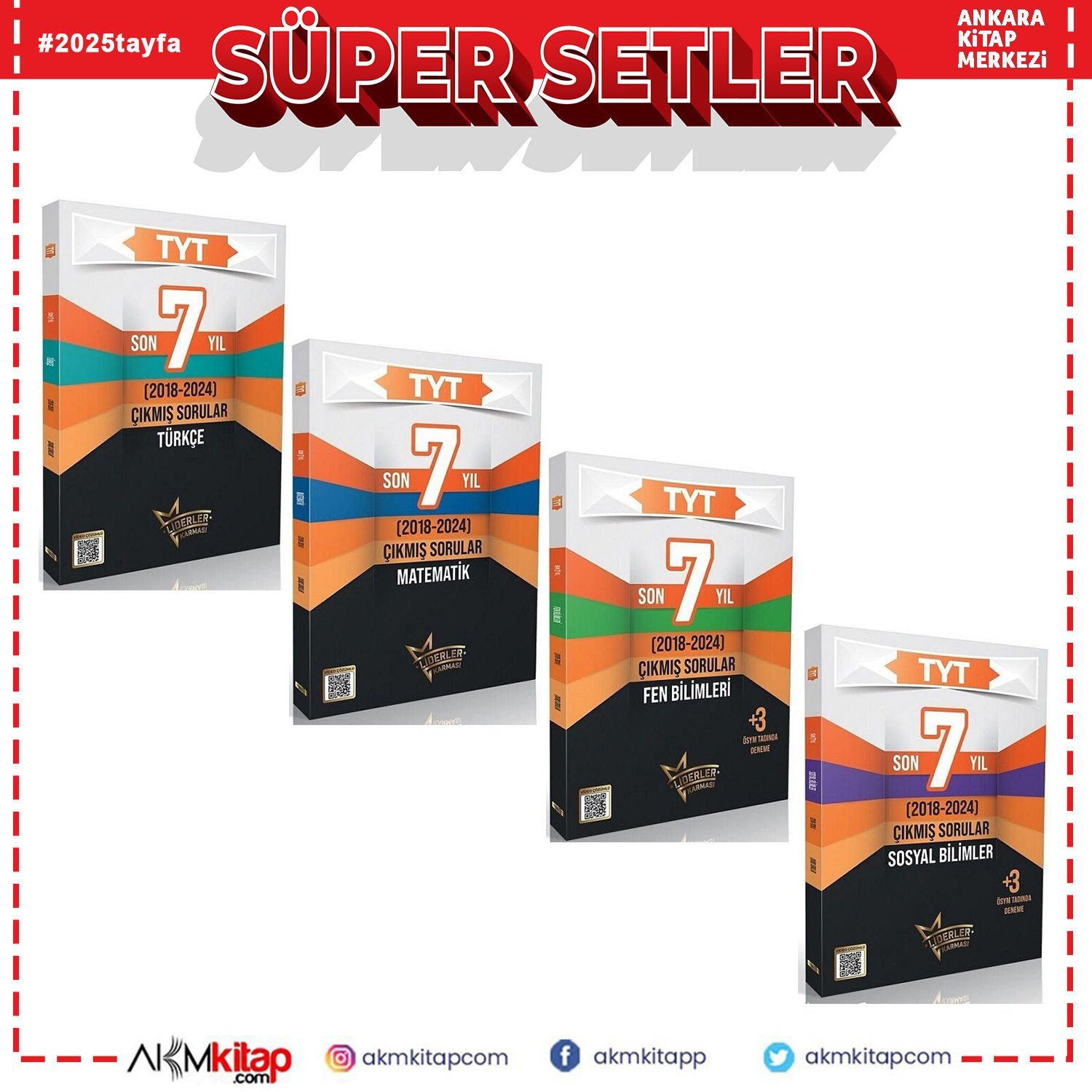 Liderler Karması TYT Matematik Türkçe Fen Bilimleri ve Sosyal Bilgiler Son 7 Yıl Çıkmış Sorular Seti 4 Kitap