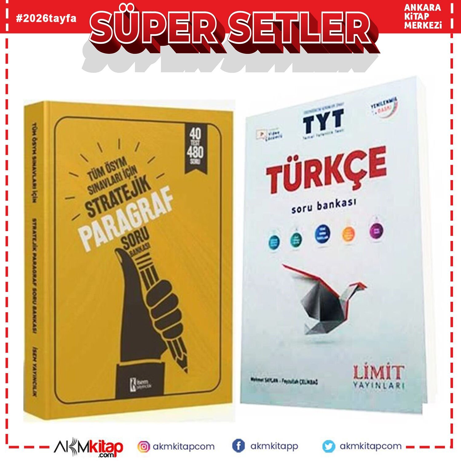 Limit TYT Türkçe ve İsem Yayınları Stratejik Paragraf Soru Bankası Seti 2 Kitap