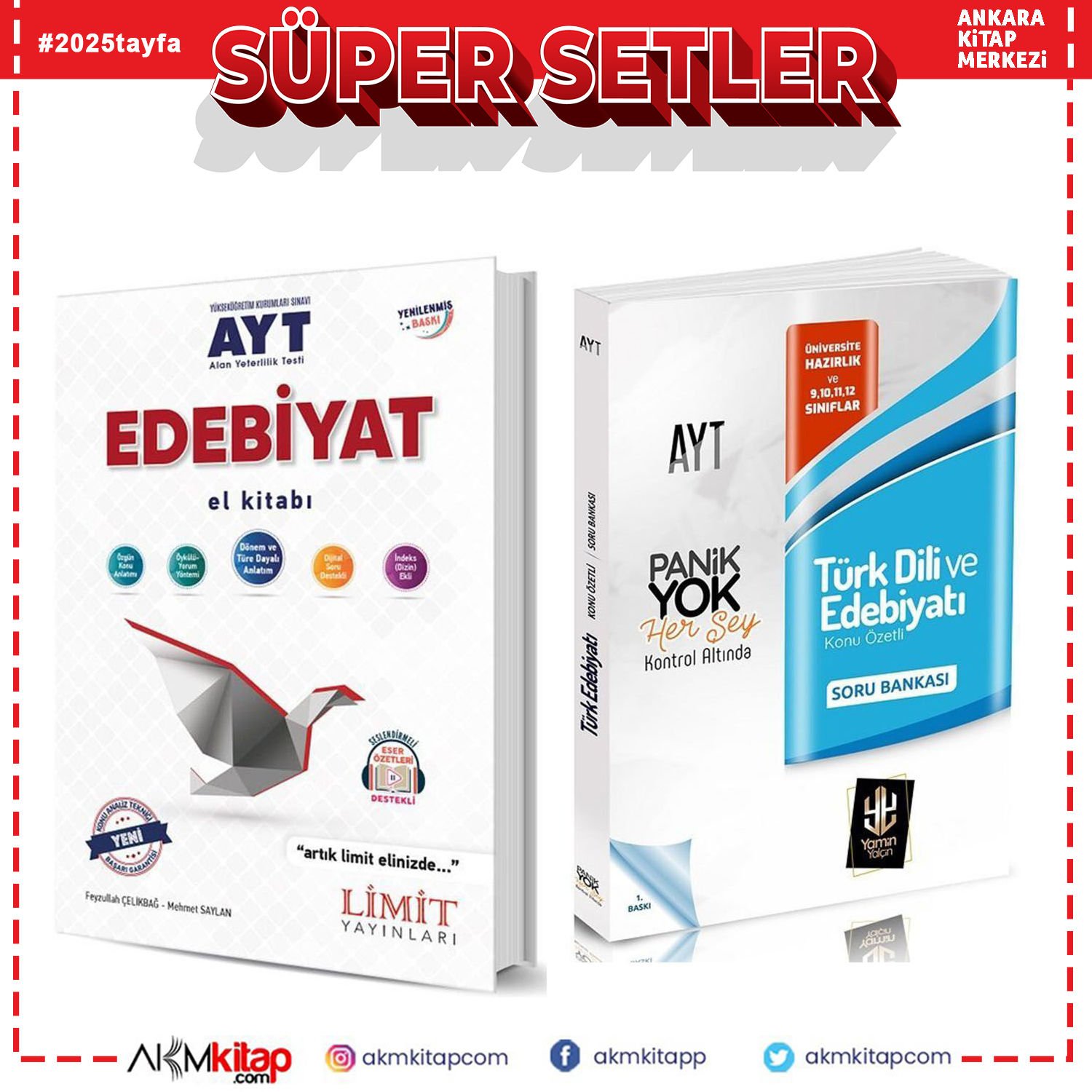 Limit Yayınları AYT Edebiyat El Kitabı ile AYT Türk Dili ve Edebiyatı Soru Bankası Panik Yok 2 Kitap Set