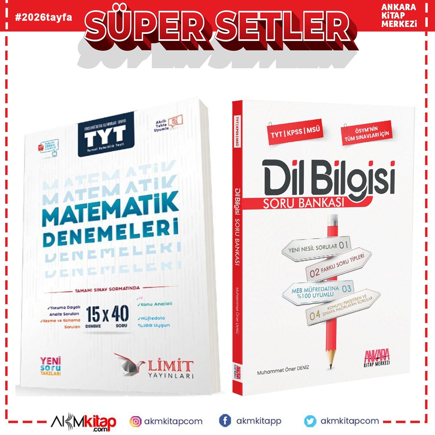 Limit Yayınları TYT Matematik 15x40 Denemeleri ve AKM Dil Bilgisi Soru Bankası Seti 2 Kitap