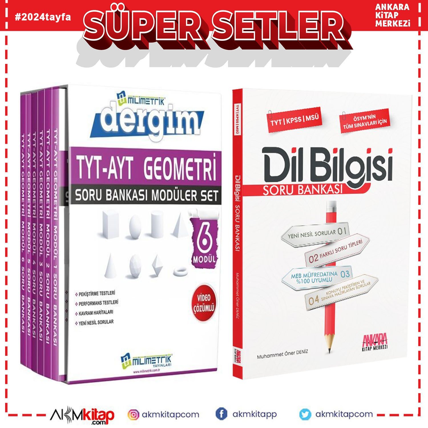 Milimetrik TYT AYT Geometri Seti ve AKM Dil Bilgisi Soru Bankası Seti 2 Kitap