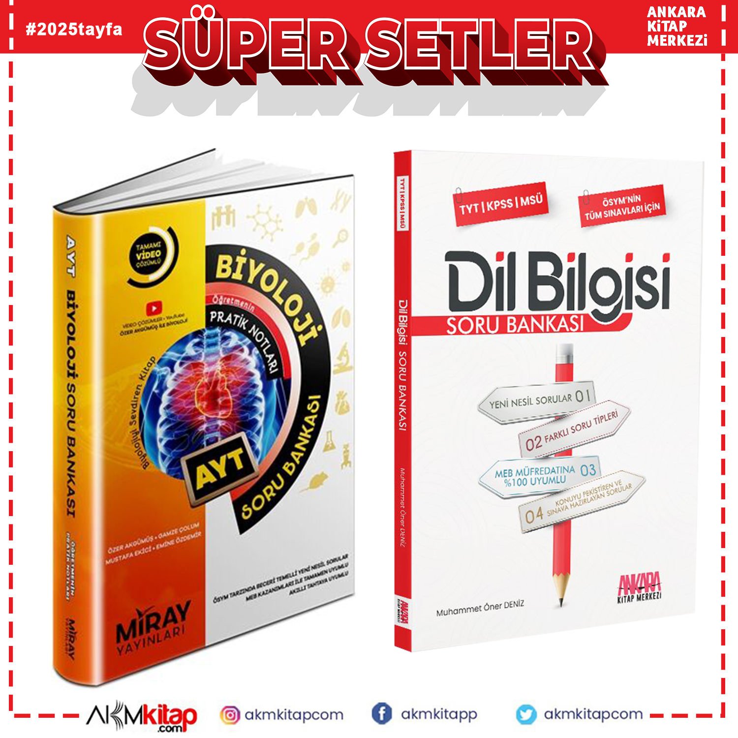 Miray Yayınları AYT Biyoloji ve AKM Dil Bilgisi Soru Bankası Seti 2 Kitap
