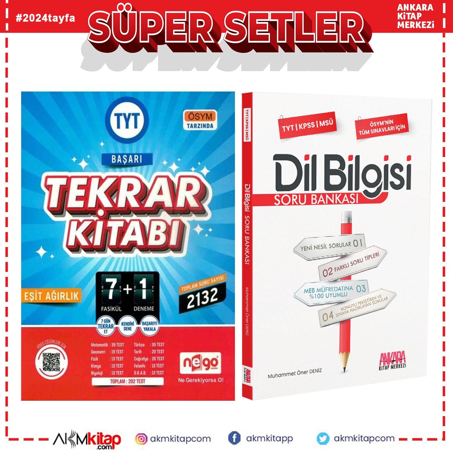 Nego Yayınları TYT Eşit Ağırlık Başarı Tekrar Kitabı ve AKM Dil Bilgisi Soru Bankası Seti 2 Kitap