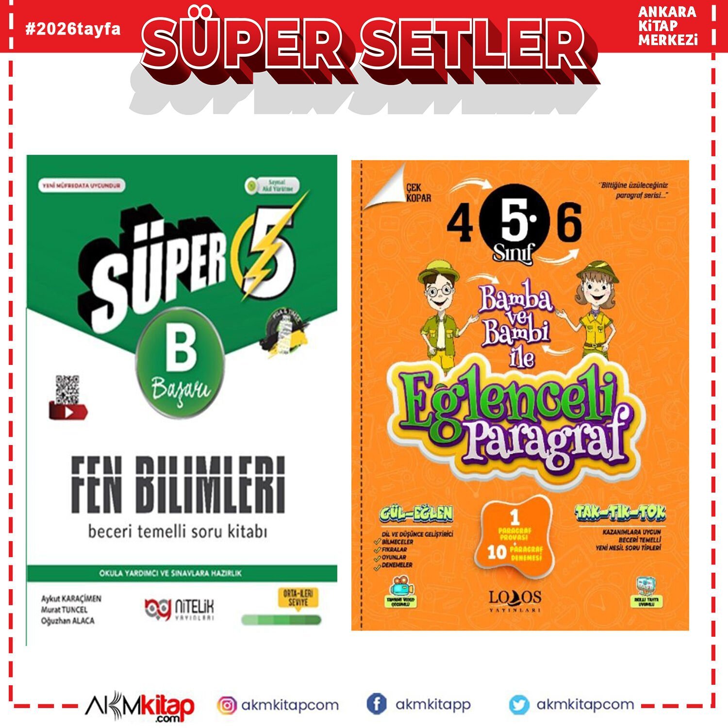 Nitelik Yayınları 5. Sınıf Fen Bilimleri Süper A Beceri Temelli ve Lodos Eğlenceli Paragraf Soru Bankası Seti 2 Kitap