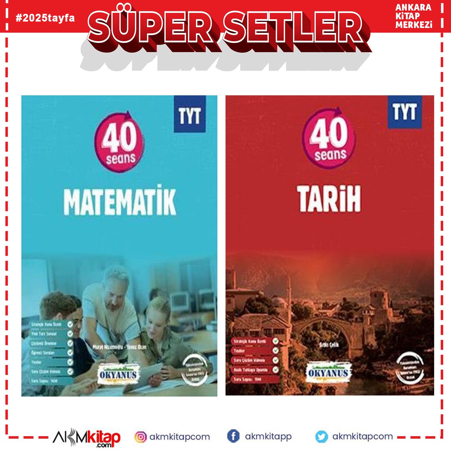 Okyanus TYT Matematik ve Tarih 40 Seansta Soru Bankası Seti 2 Kitap