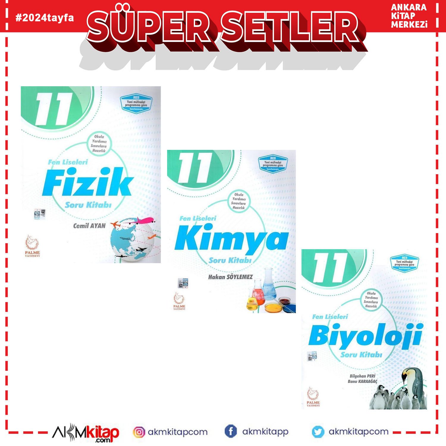 Palme 11.Sınıf Fen Lisesi Fizik Kimya ve Biyoloji Soru Bankası Seti 3 Kitap