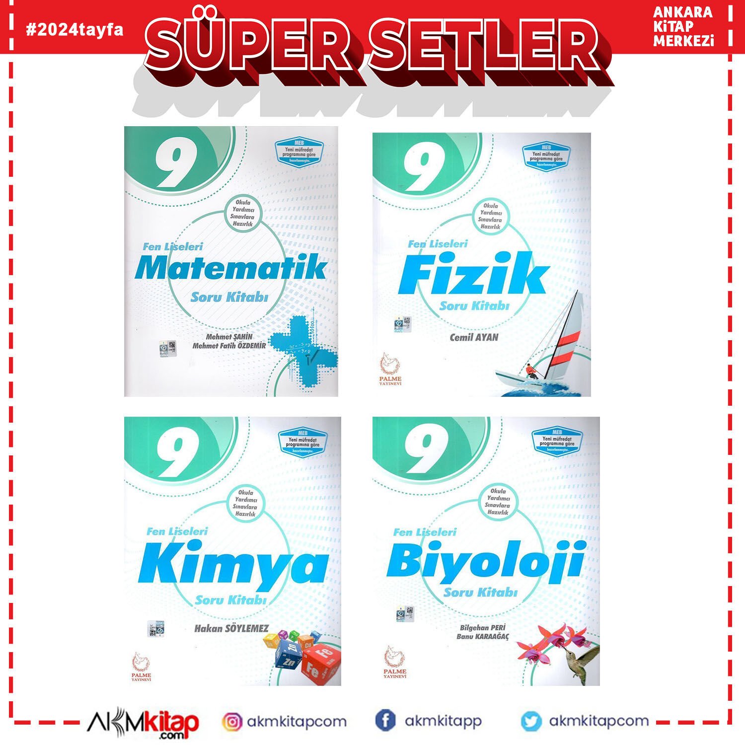Palme 9.Sınıf Fen Lisesi Matematik Fizik Kimya ve Biyoloji Soru Bankası Seti 4 Kitap