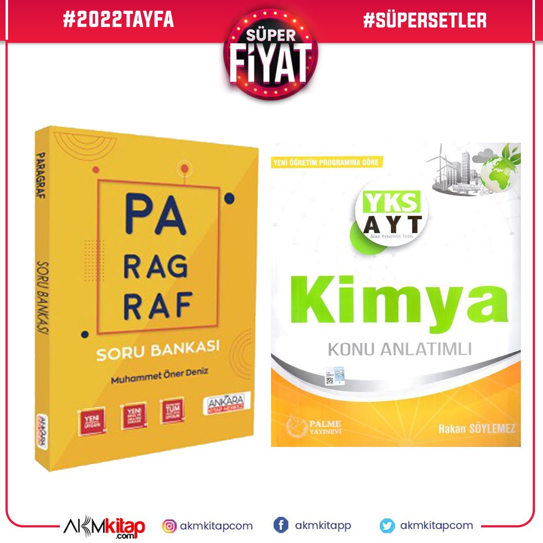 Palme AYT Kimya Konu ve AKM Paragraf Soru Bankası Seti 2 Kitap