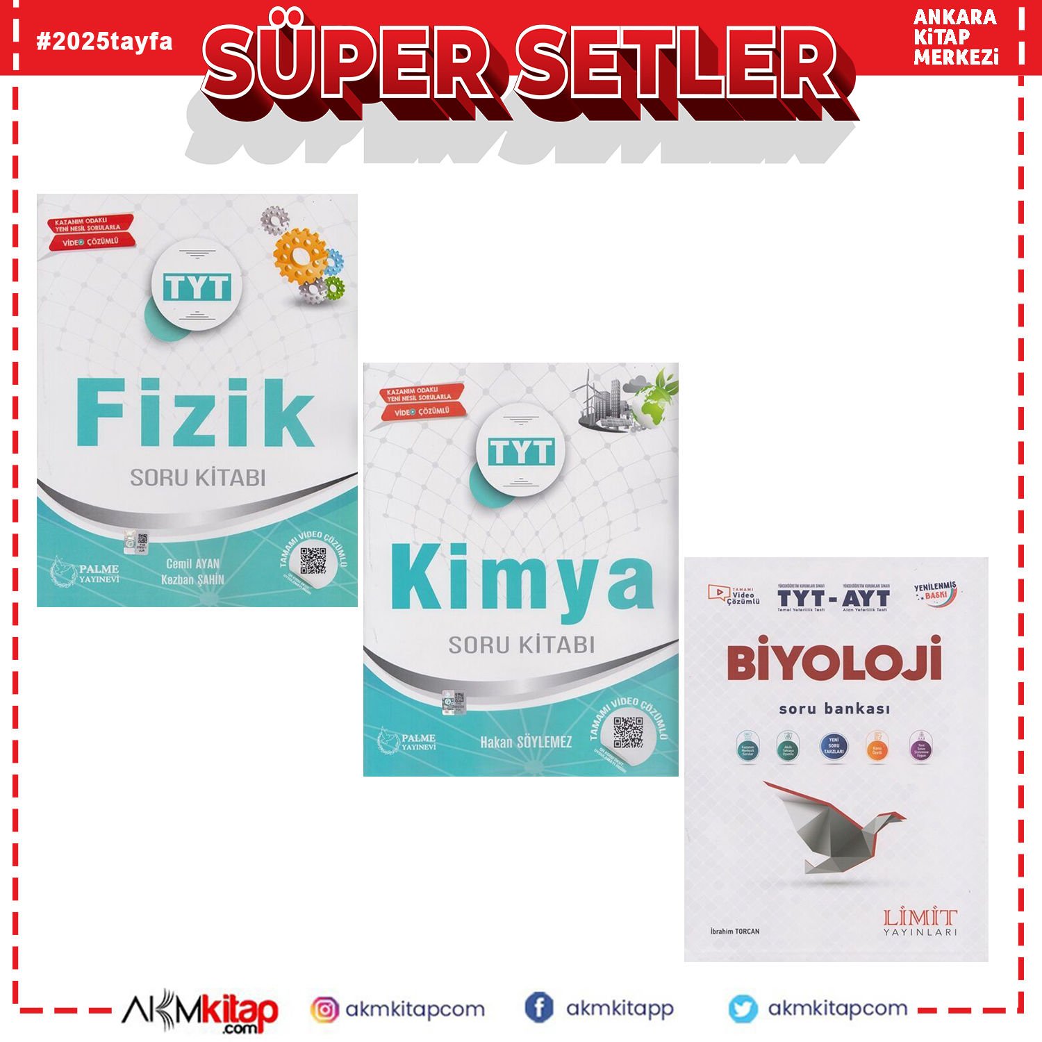 Palme TYT Fizik ve Kimya Limit TYT AYT Biyoloji Soru Bankası 3 Kitap Set