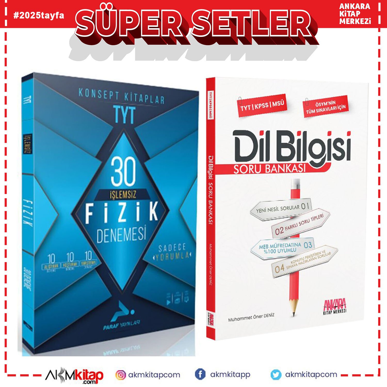 Paraf TYT İşlemsiz Fizik 30 Deneme ve AKM Dil Bilgisi Soru Bankası Seti 2 Kitap
