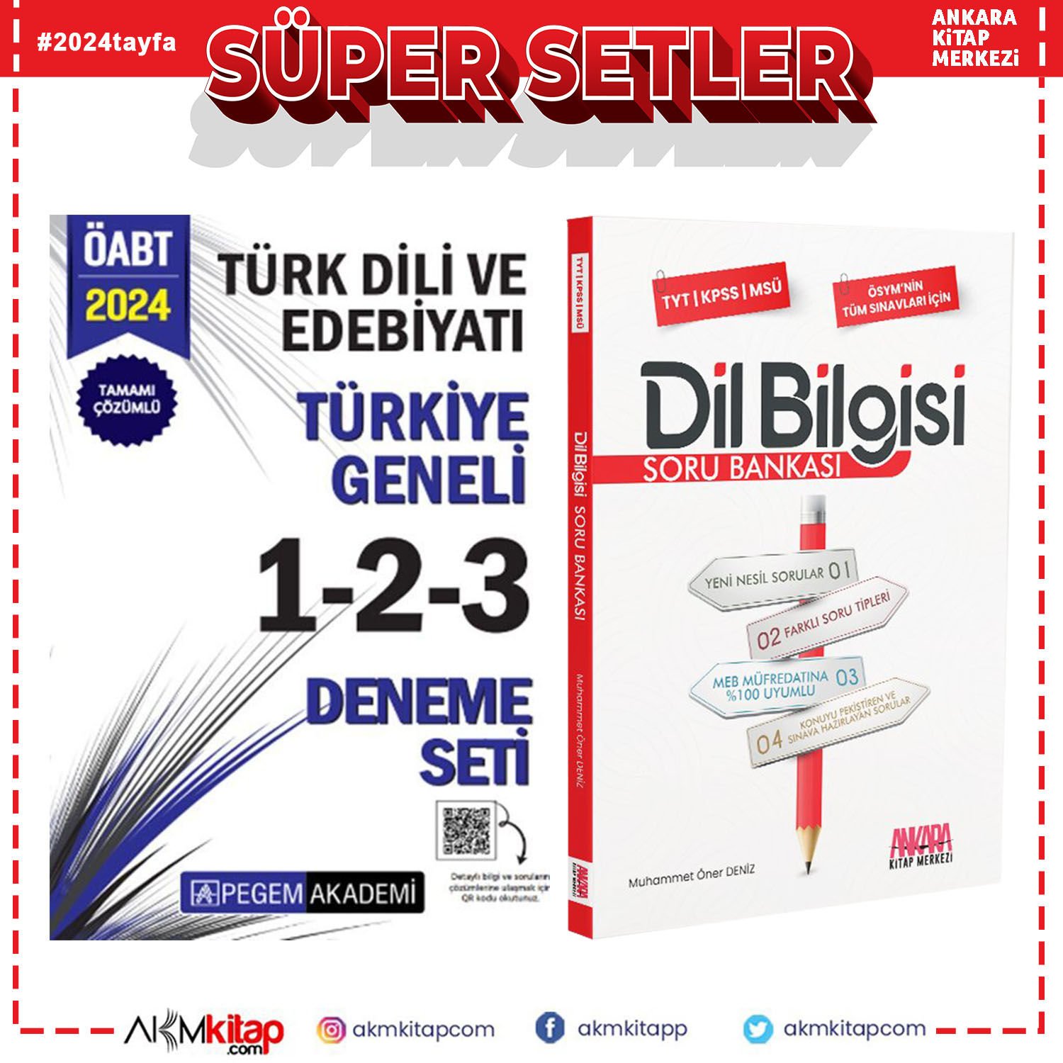 Pegem 2024 KPSS ÖABT Türk Dili Edebiyatı Türkiye Geneli 1-2-3 Deneme Seti ve AKM Kitap Dil Bilgisi Soru Bankası Seti 2 Kitap