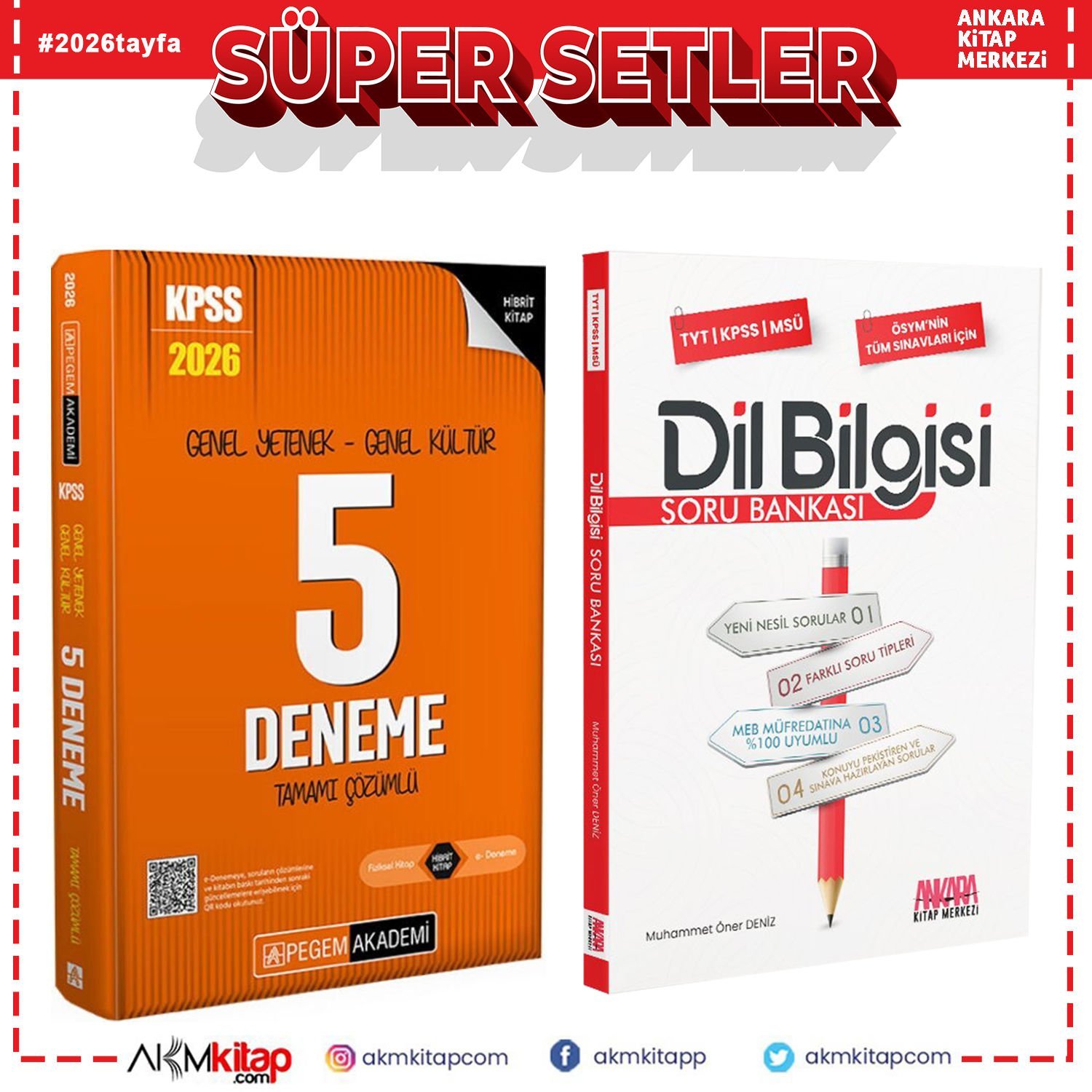 Pegem Yayınları 2026 KPSS Genel Yetenek Genel Kültür Tamamı Çözümlü 5 Deneme ve AKM Dil Bilgisi Soru Bankası Seti 2 Kitap