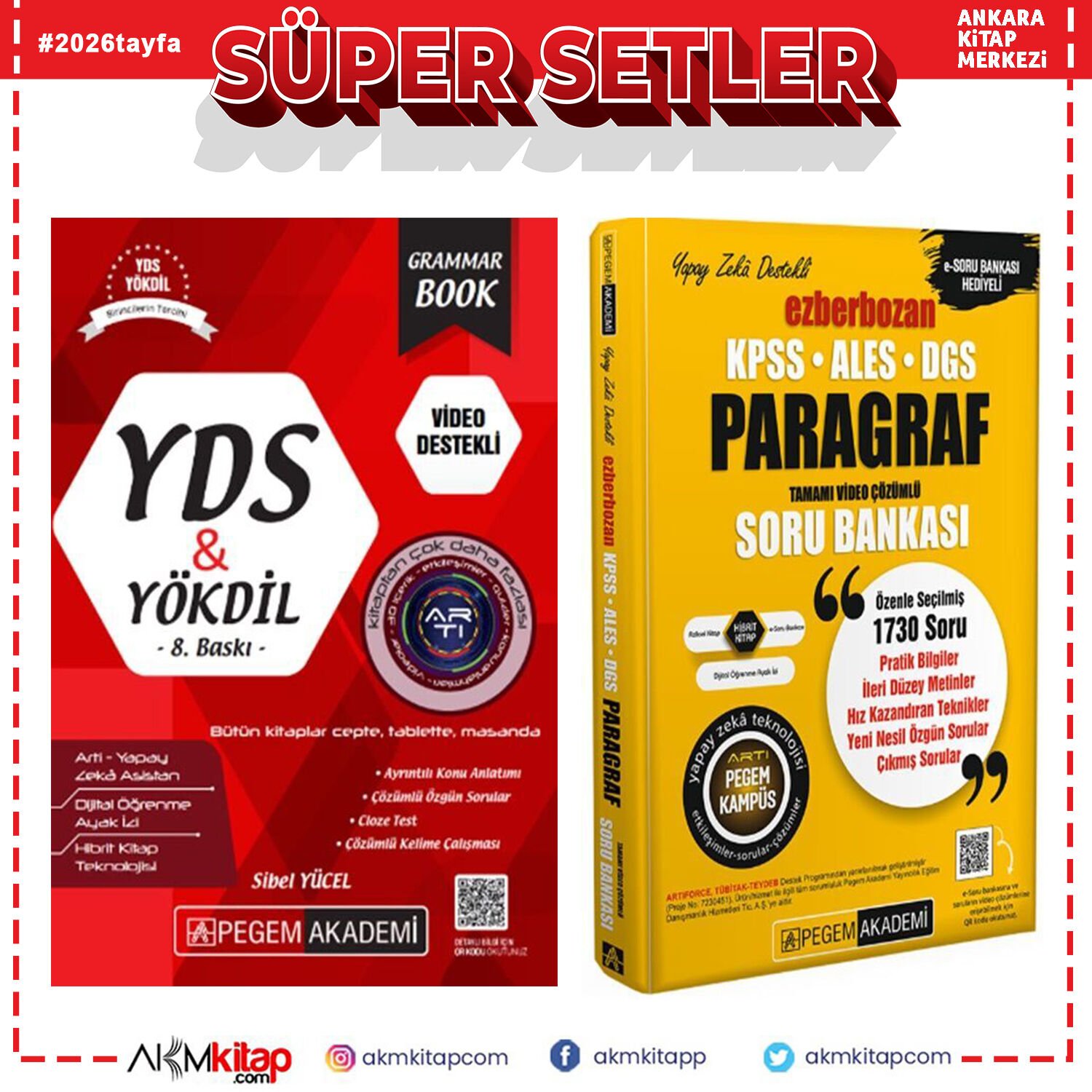 Pegem Yayınları YDS YÖKDİL Grammar Book ve Ezberbozan Paragraf Soru Bankası Seti 2 Kitap