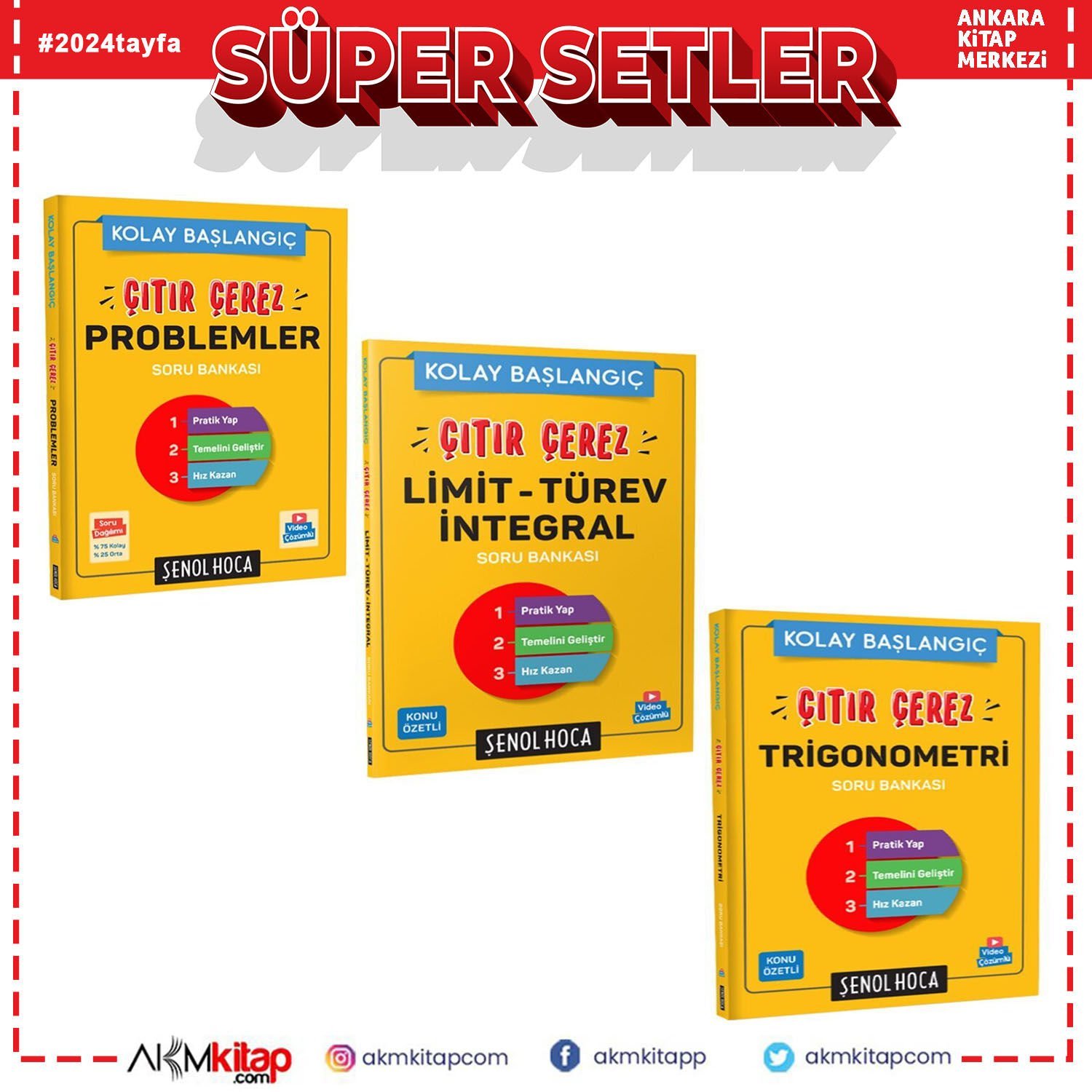 Şenol Hoca Problemler Limit Türev İntegral ve Trigonometri Seti 3 Kitap