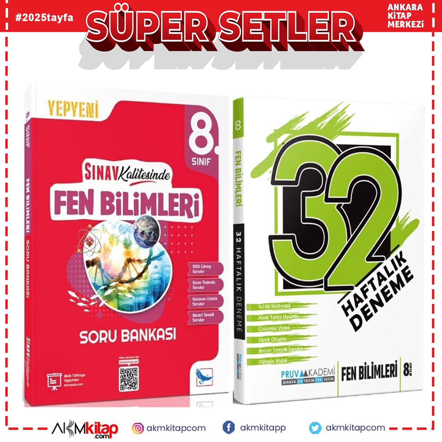 Sınav Yayınları 8. Sınıf Fen Bilimleri Sınav Kalitesinde Soru Bankası ve Pruva 32 Haftalık Deneme Seti 2 Kitap