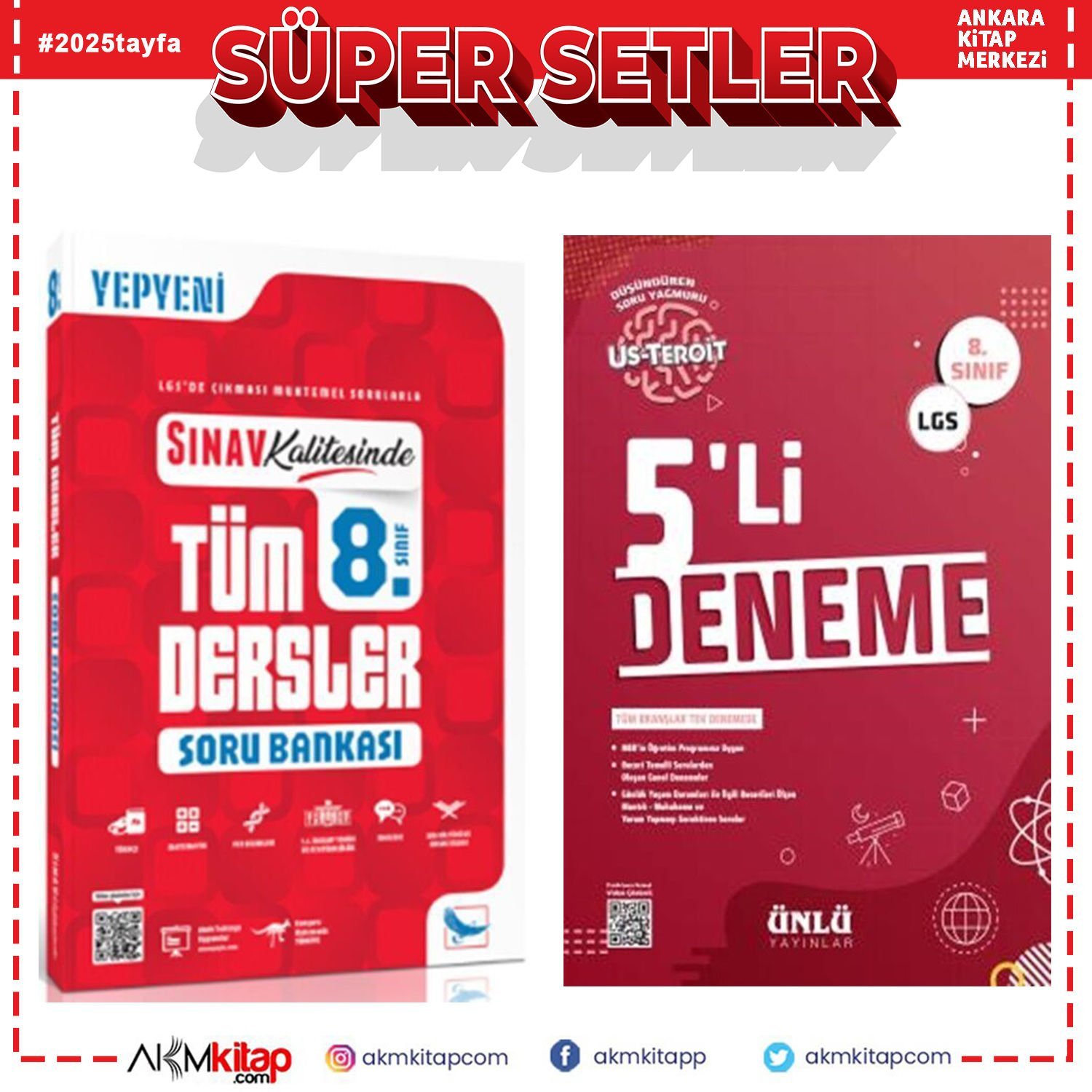 Sınav Yayınları 8. Sınıf LGS Tüm Dersler Soru Bankası ve Ünlü 5 li Deneme Seti 2 Kitap
