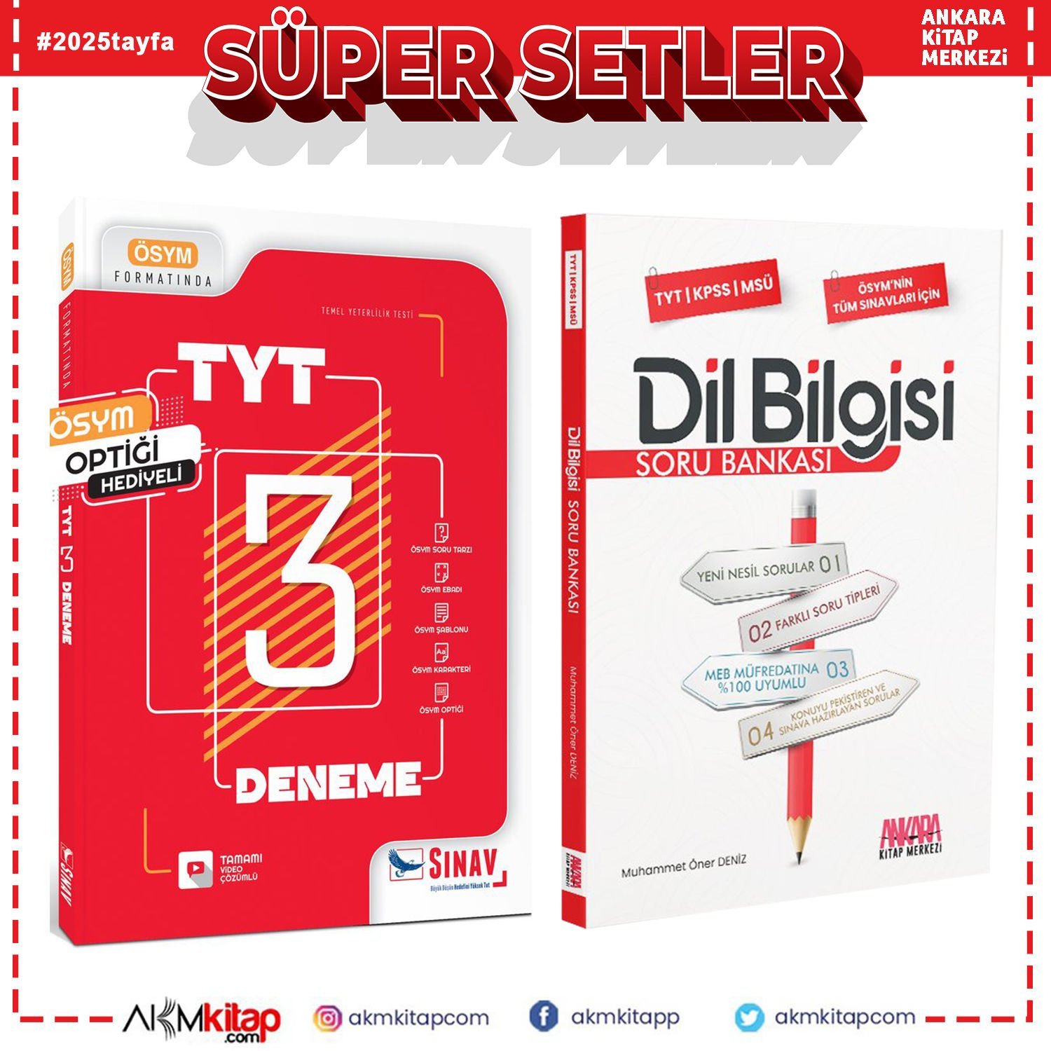 Sınav Yayınları TYT Tamamı Video Çözümlü 3 Deneme ve AKM Dil Bilgisi Soru Bankası Seti 2 Kitap