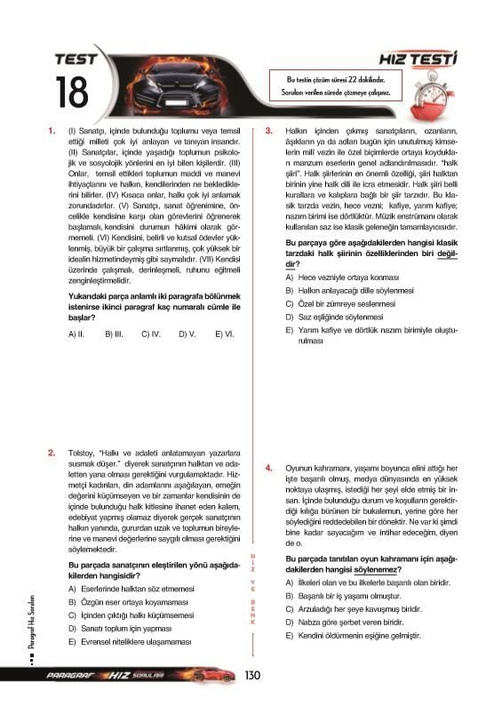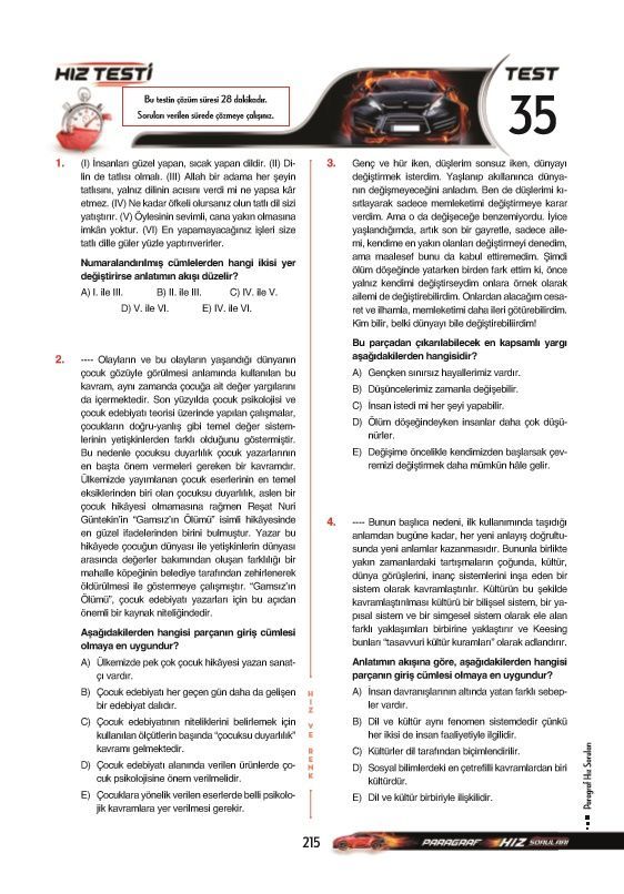 TYT AYT KPSS ALES DGS Paragraf Hız Soruları Hız ve Renk Yayınları