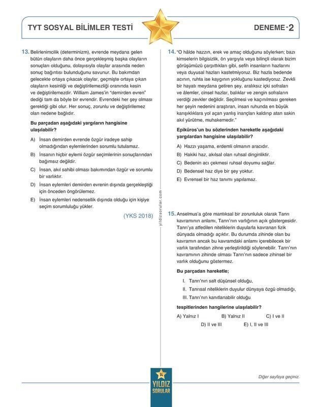 TYT Sosyal Bilimler 8 Deneme Yıldız Sorular
