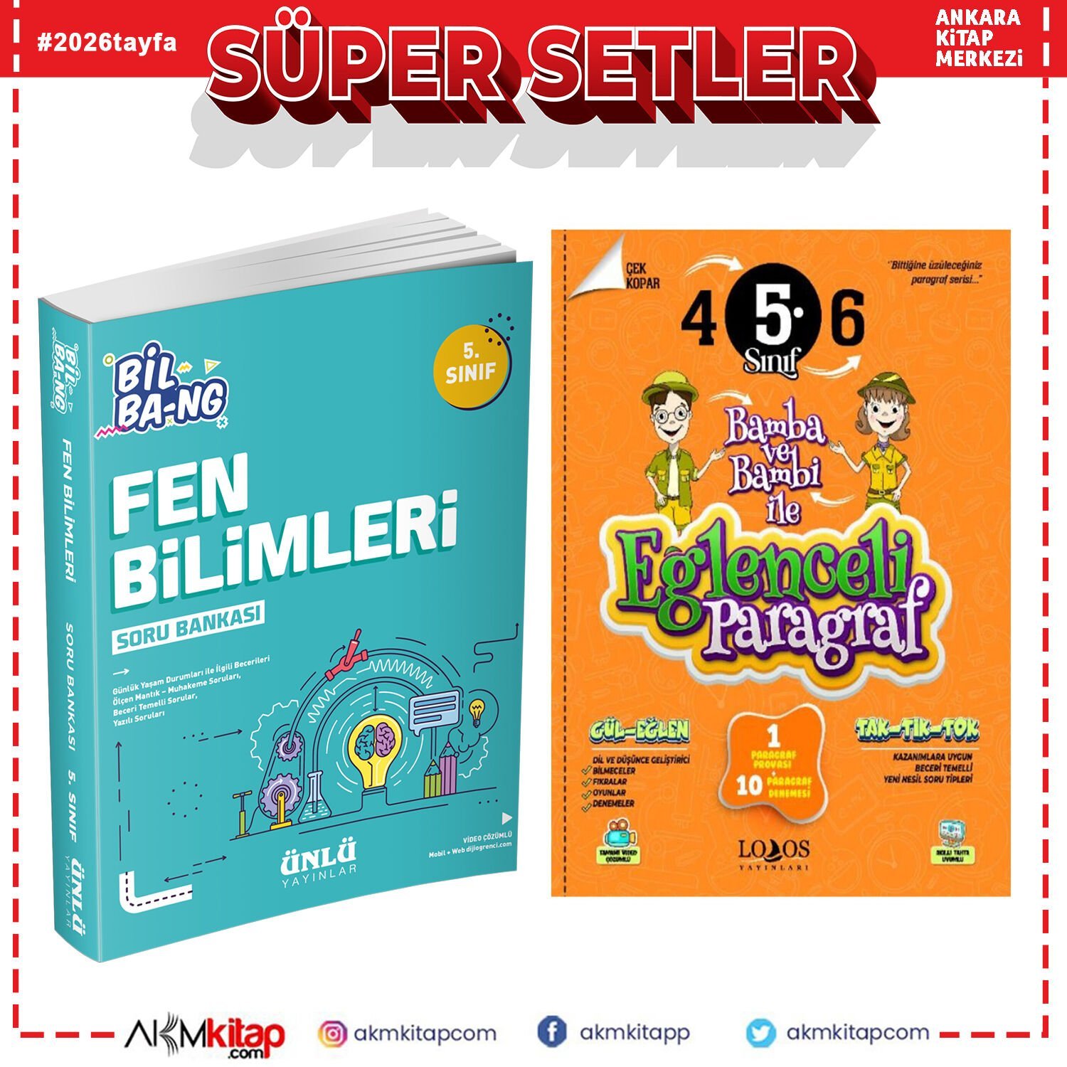 Ünlü Yayınları 5.Sınıf Bil Bang Fen Bilimleri ve Lodos Eğlenceli Paragraf Soru Bankası Seti 2 Kitap
