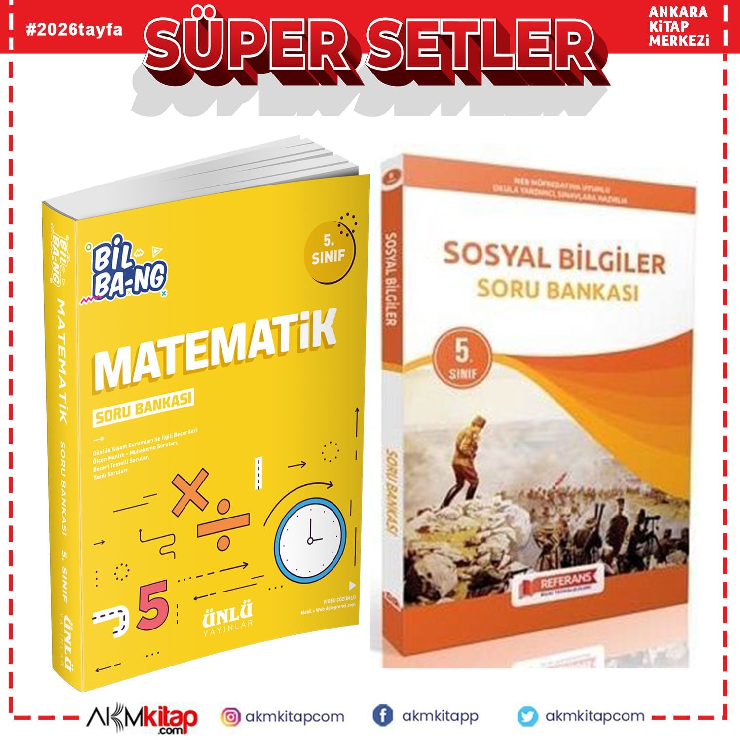 Ünlü Yayınları 5.Sınıf Bil Bang Matematik ve Referans Sosyal Bilgiler Soru Bankası Seti 2 Kitap