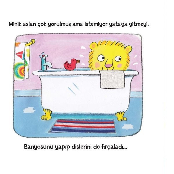 Minik aslan yorulmuş ve çok uykusu gelmiş, ama yatağa gitmeyi istemiyor bir türlü. Gün bitti, şimdi uyku zamanı. Peki, nasıl uyuyacak? Hadi gel uykucu aslana gösterelim.