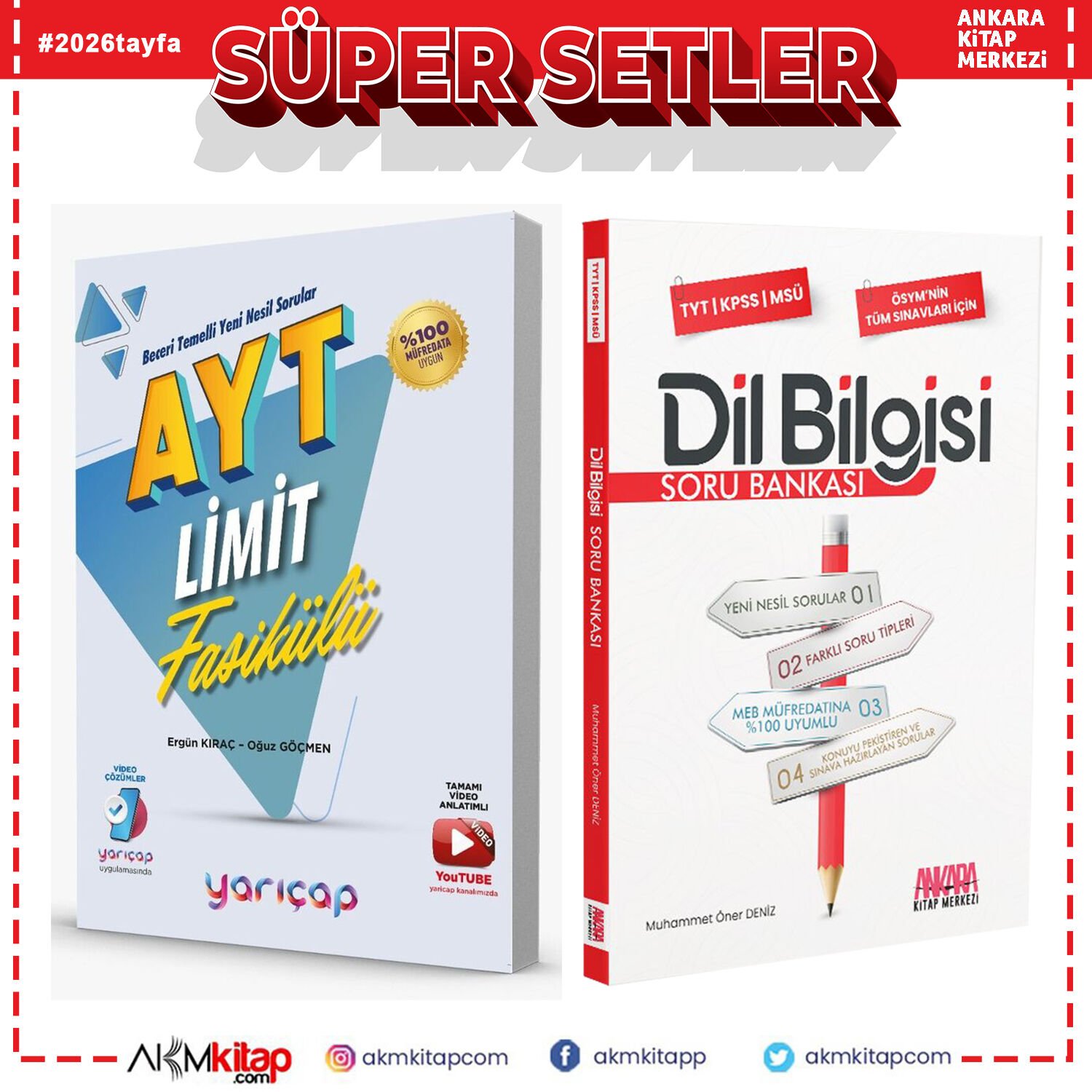YarıÇap Yayınları AYT Limit Fasikülleri ve AKM Dil Bilgisi Soru Bankası Seti 2 Kitap
