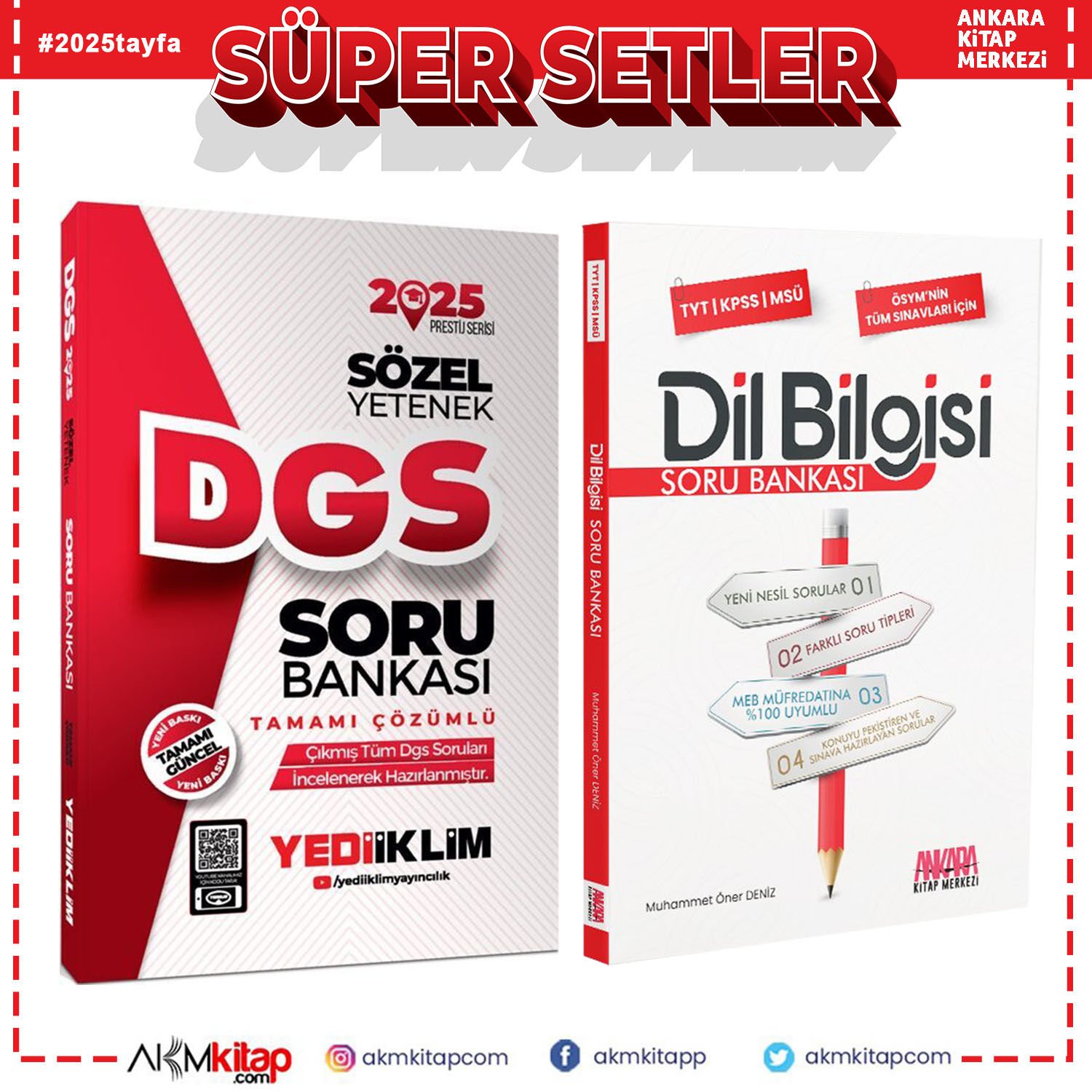 Yediiklim 2025 DGS Sözel Yetenek ve AKM Dil Bilgisi Soru Bankası Seti 2 Kitap