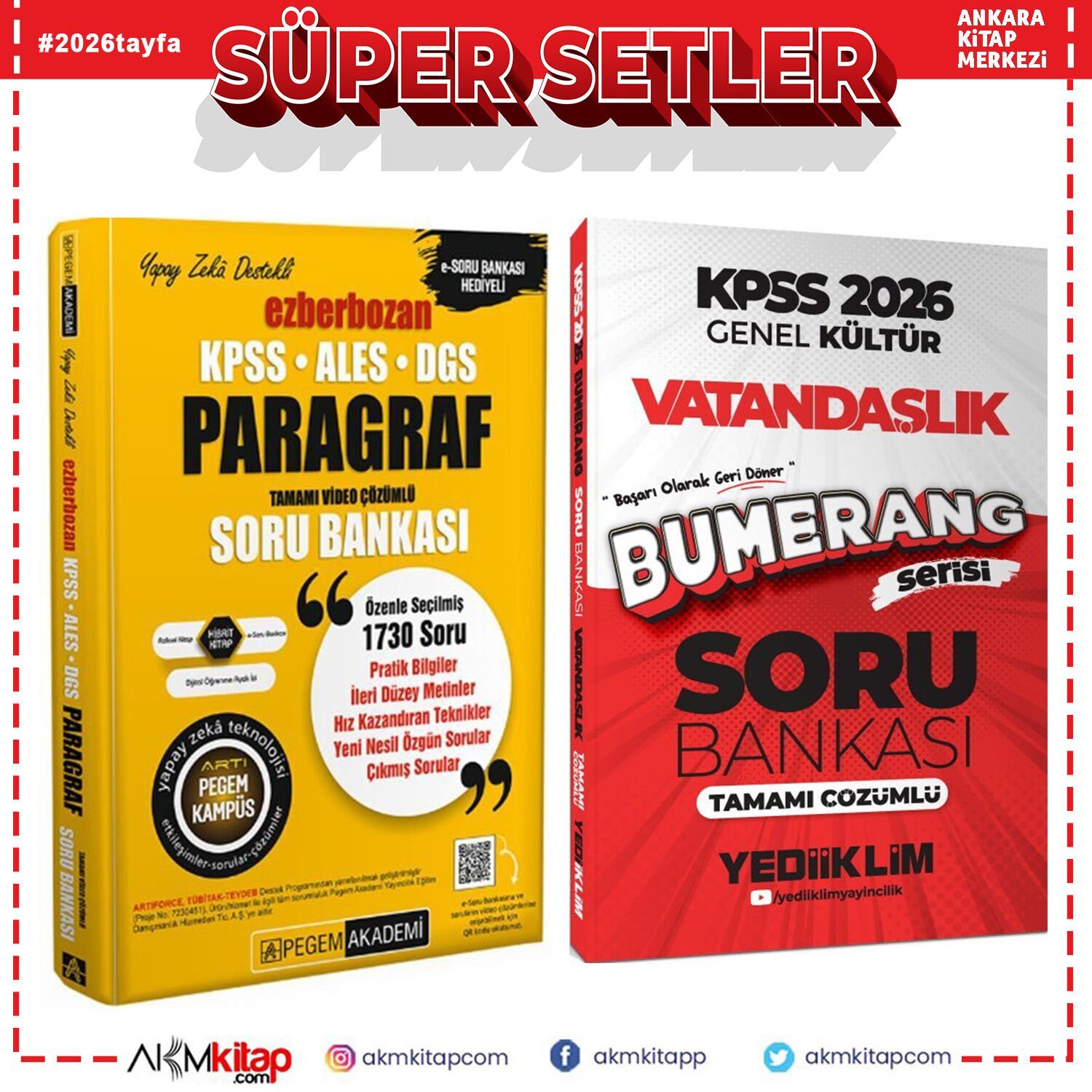 Yediiklim 2026 KPSS Bumerang Vatandaşlık ve Pegem Ezberbozan Paragraf Soru Bankası Seti 2 Kitap