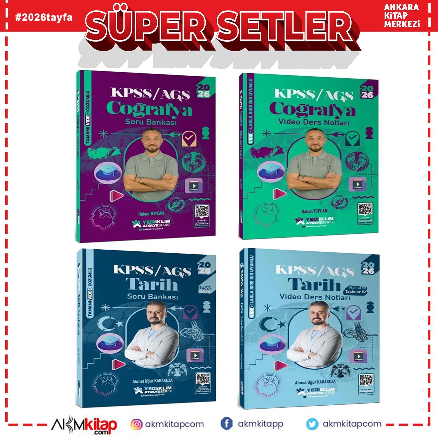 Yediiklim 2026 KPSS Tarih ve Coğrafya Atölye Video Ders Notları ve Soru Bankası Seti 4 Kitap