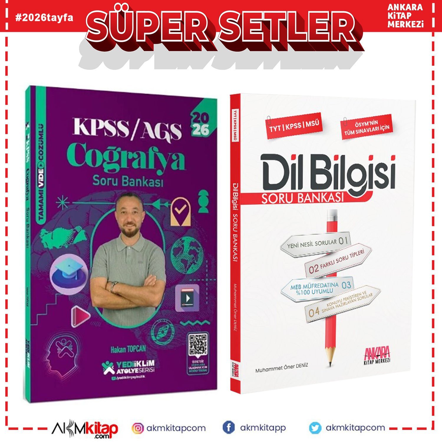 Yediiklim Yayınları 2026 KPSS Coğrafya Atölye ve AKM Dil Bilgisi Soru Bankası Seti 2 Kitap