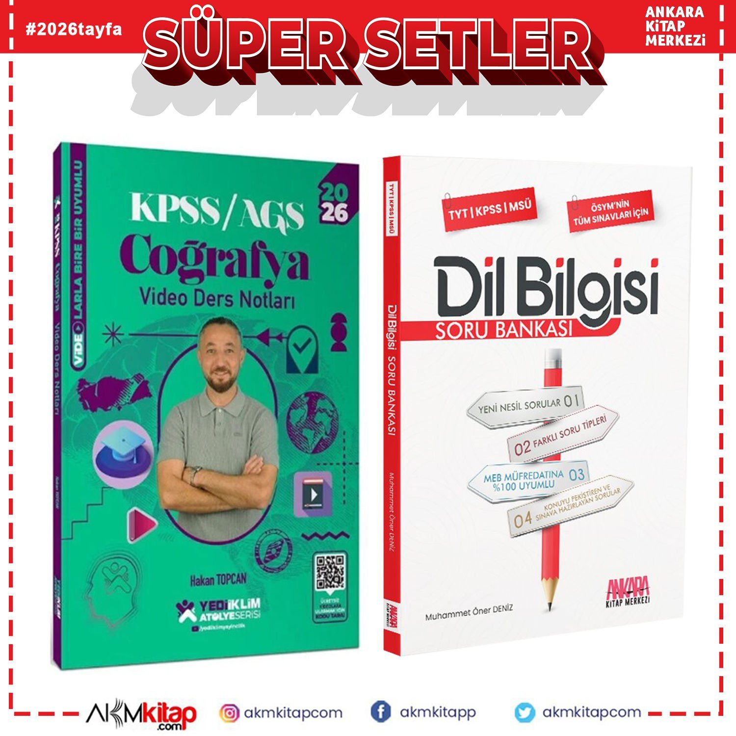 Yediiklim Yayınları 2026 KPSS Coğrafya Atölye Video Ders Notları ve AKM Dil Bilgisi Soru Bankası Seti 2 Kitap
