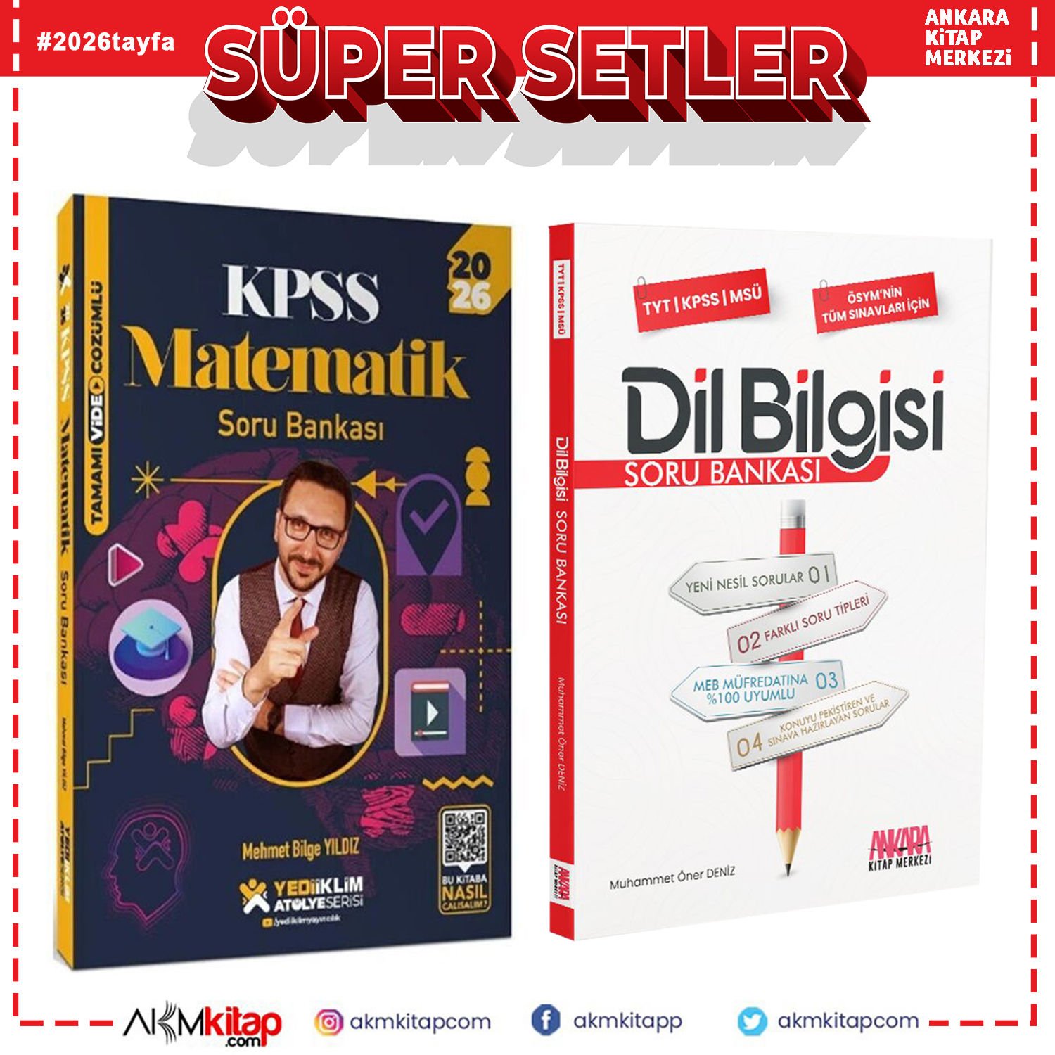 Yediiklim Yayınları 2026 KPSS Matematik Atölye ve AKM Dil Bilgisi Soru Bankası Seti 2 Kitap