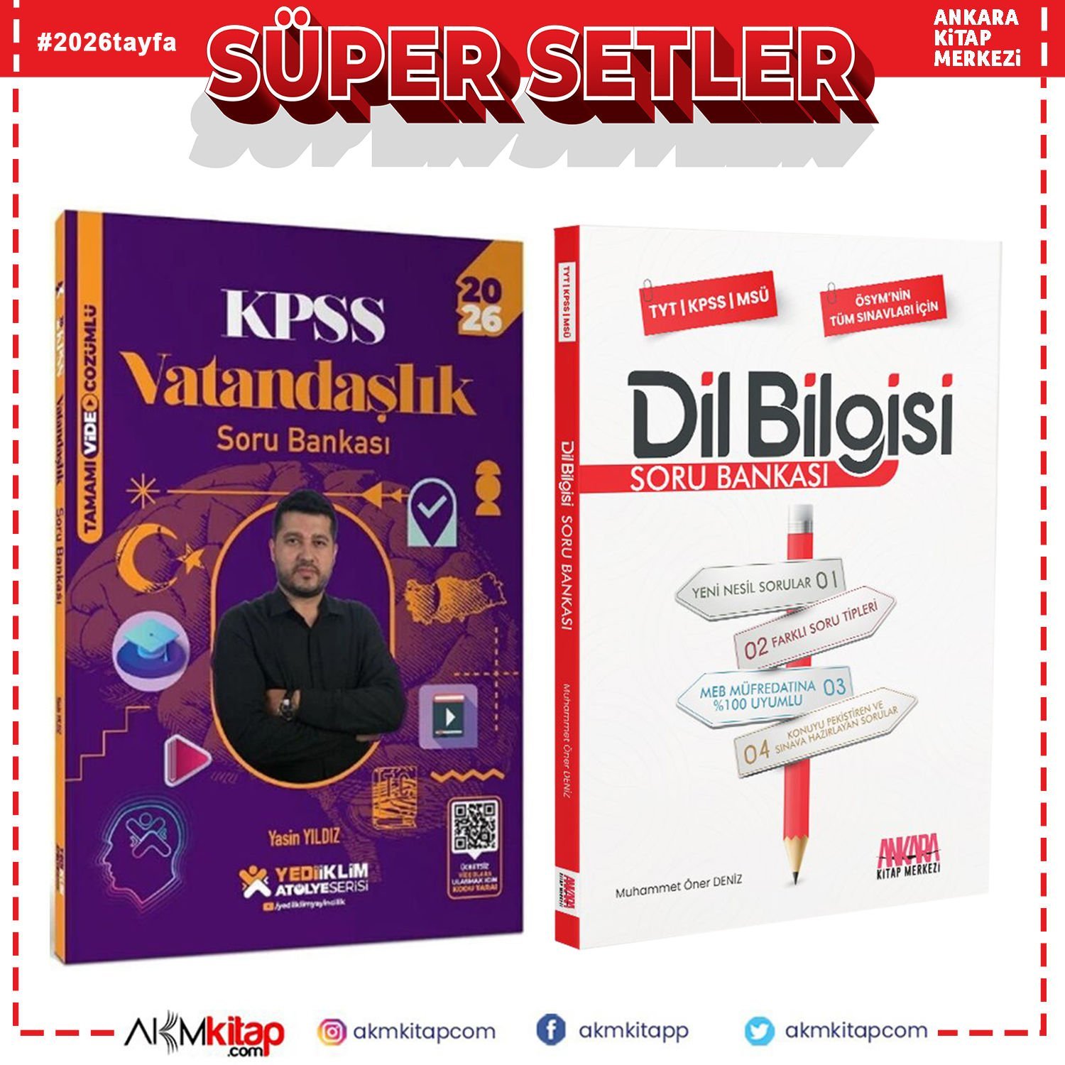 Yediiklim Yayınları 2026 KPSS Vatandaşlık Atölye ve AKM Dil Bilgisi Soru Bankası Seti 2 Kitap