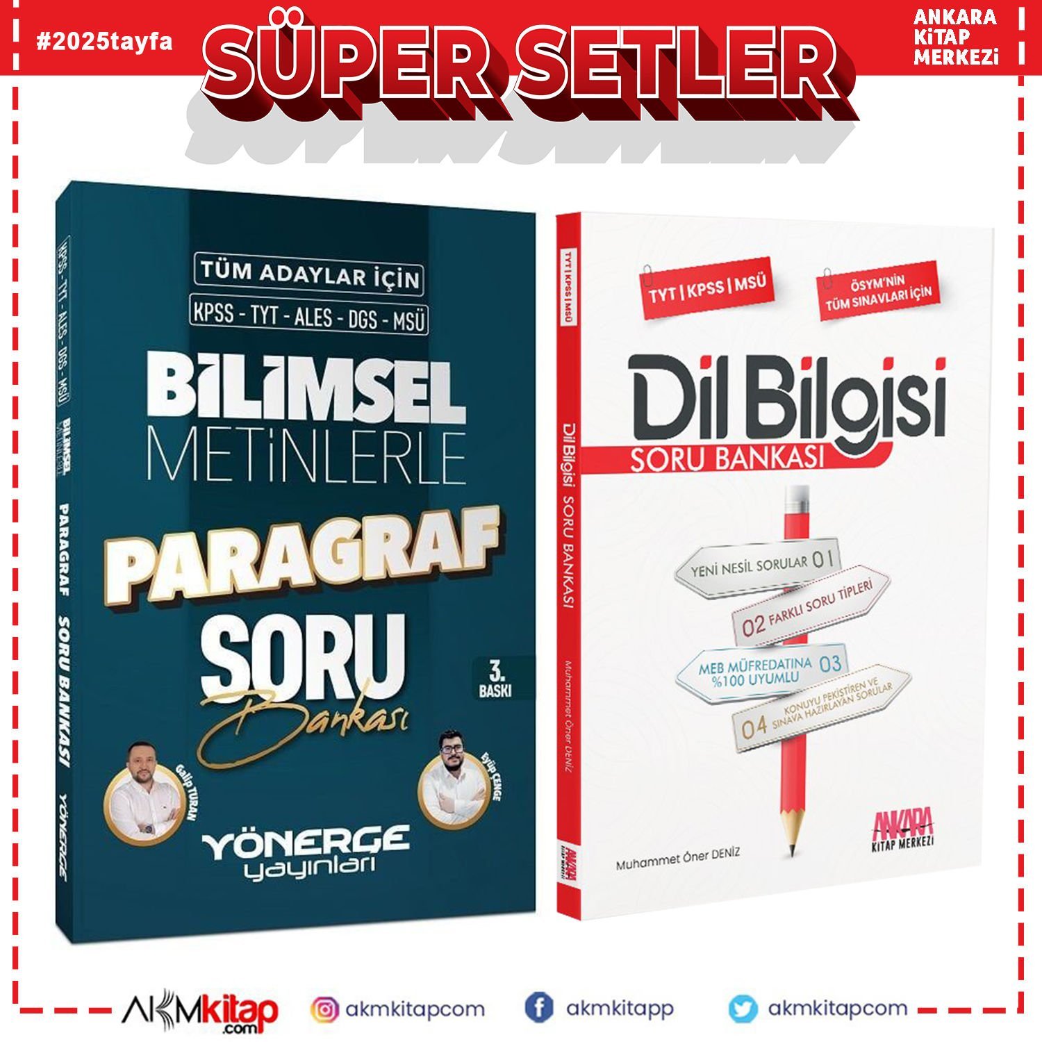 Yönerge KPSS TYT ALES DGS Bilimsel Metinlerle Paragraf ve AKM Dil Bilgisi Soru Bankası Seti 2 Kitap